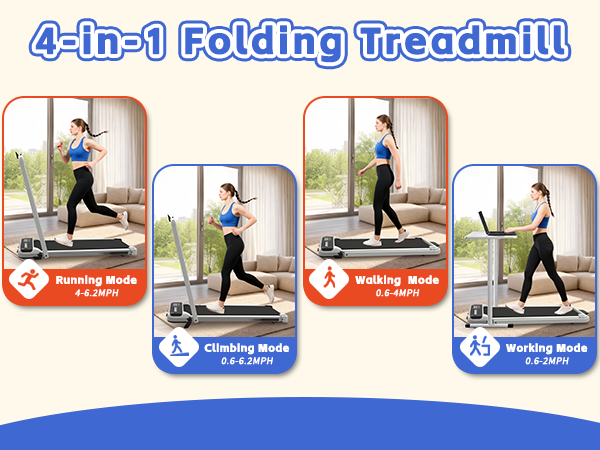• 【Treadmill With 0.6-6.2 MPH】: This portable treadmill has a speed range of 0.6-6.2MPH while keeping the noise below 60 decibels to avoid disturbing others