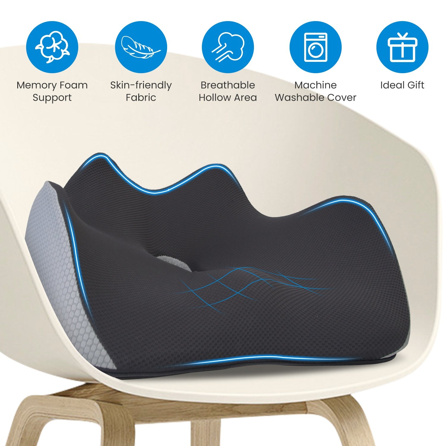 Home > Memory Foam Seat Cushion Sciatica Pain Relief Cushion Pillow Seat Cushion with Machine Washable Cover for Home Office Car Wheelchair Airplane